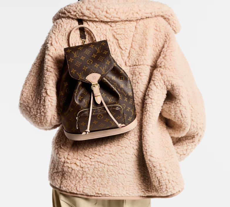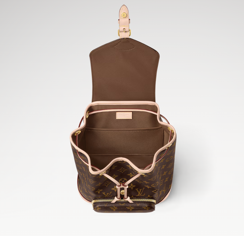 Nicolas Ghesquière traces the origins of the Montsouris handbag, first launched by the brand in 1994, and presents the Montsouris small backpack in Monogram coated canvas and cowhide leather trim. Leather handles and an adjustable Monogram canvas shoulder strap allow for multiple carrying options, while drawstring and magnetic closure ensure secure storage.