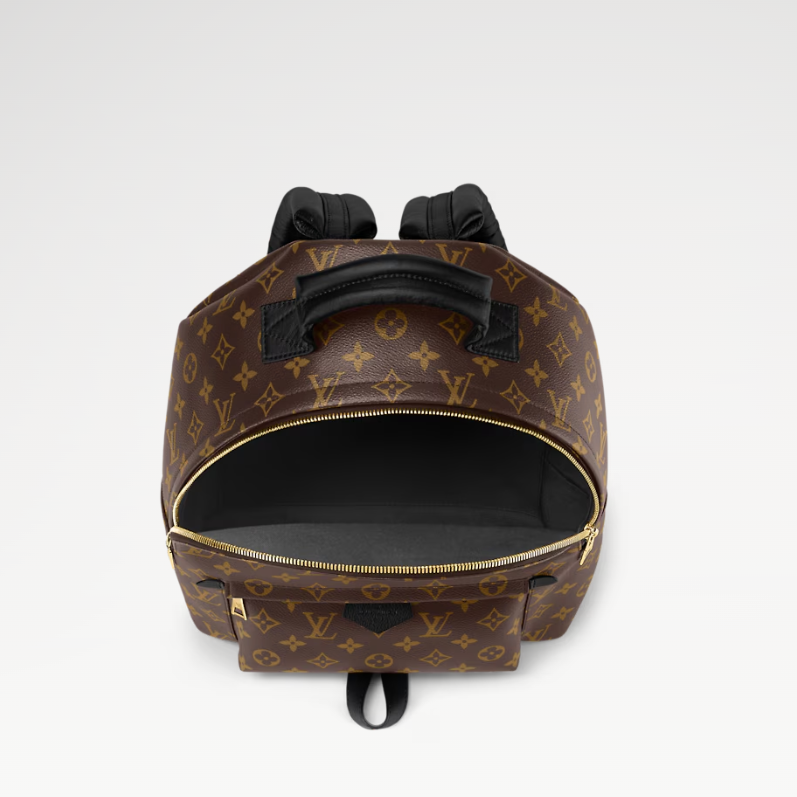 his Palm Springs medium backpack combines functionality with urban style, offering a fresh and vibrant look that suits the pace of modern life. Monogram canvas provides ample space, while soft leather trim and striking metal hardware add eye-catching details. A foam-lined quilted shoulder strap ensures comfortable carrying.
