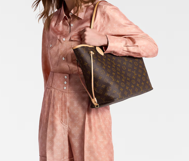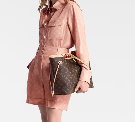 This Neverfull medium tote bag features supple Monogram canvas outlined with cowhide leather trim, and a vibrant fabric lining within its spacious design. The side straps offer a variety of looks whether tightened or loose. Slim handles allow for easy shoulder or elbow carrying, while a detachable zip pocket can be used as a clutch or pocket.